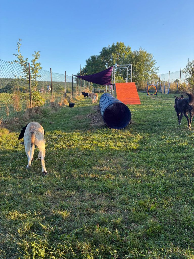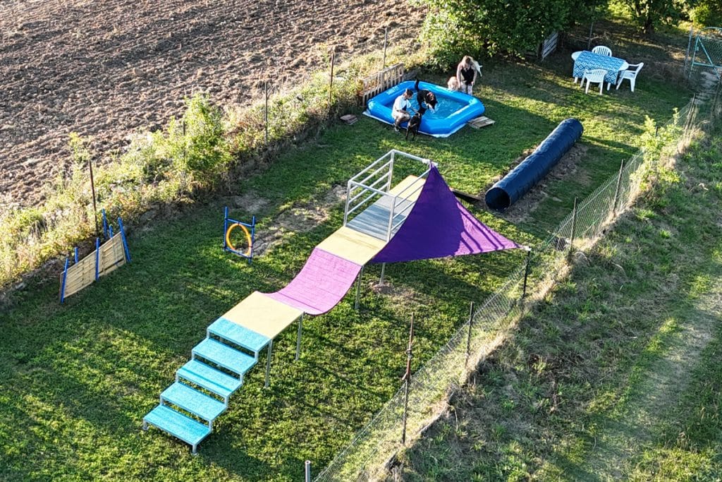 - Des aires de jeux extérieures, avec des modules d’agilité, des coussins, des jouets et des parcours variés,