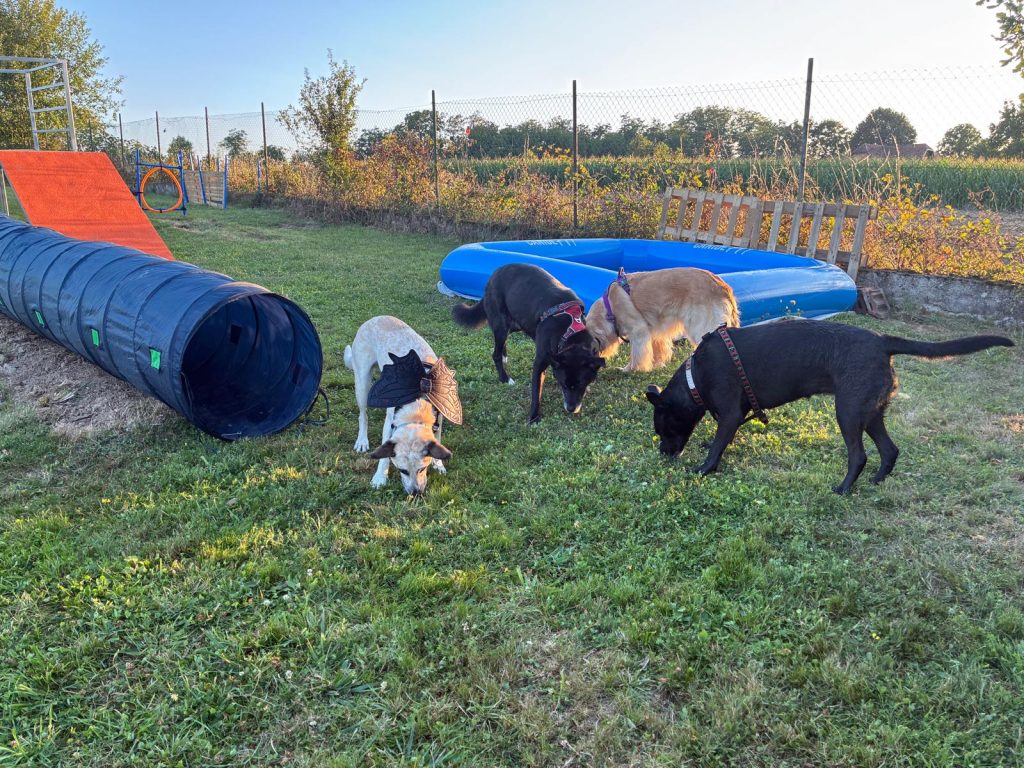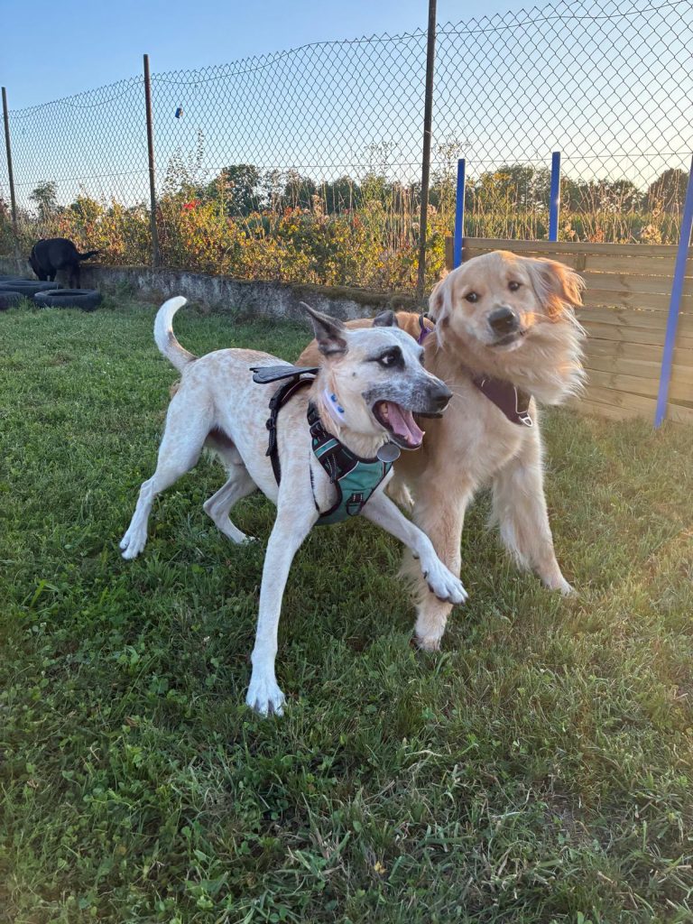 Pour garantir la sécurité et le bien-être de tou·te·s, les chiens sont souvent répartis en petits groupes, selon leur taille, leur âge ou leur niveau d’énergie. Cette organisation favorise une socialisation équilibrée et évite les situations de conflit. Nous avons même des espaces séparés en cas de difficultés ou de besoin d’être au calme à certains moments